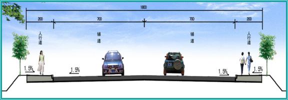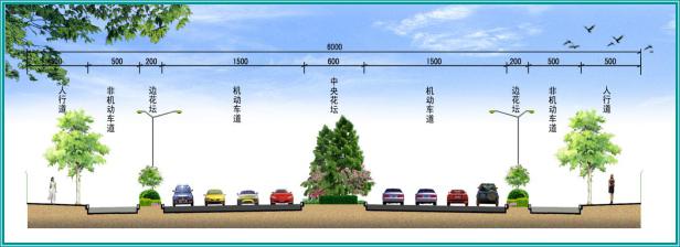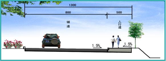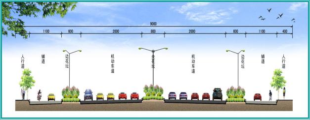 (2)经北四路两侧设置辅道(机非混行车道),路基宽度为13.0m,即:8.0m(辅道)+5.0m(人行道)=13.0m。