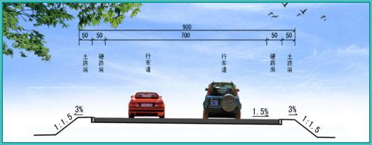 匝道均采用单向双车道,路基宽度为9.0m,即:2×0.5m(土路肩)+2×0.5m(硬路肩)+2×3.5m(行车道)=9.0m。